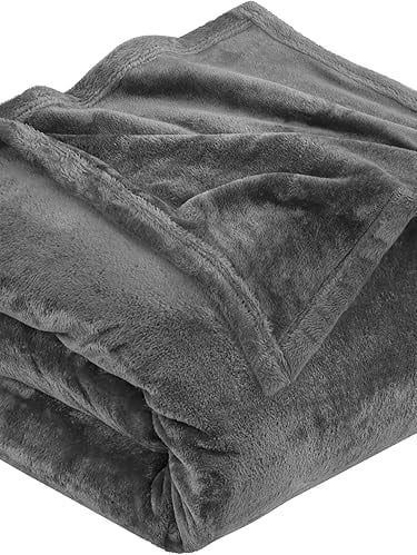 This blanket is a brushed-microfiber/flannel-fleece type blanket from Utopia Bedding, described as “300 GSM Luxury Fleece Blanket — Anti‑Static, Fuzzy Soft Microfiber”. It comes in several sizes (Twin, Queen, King) and a variety of colors.